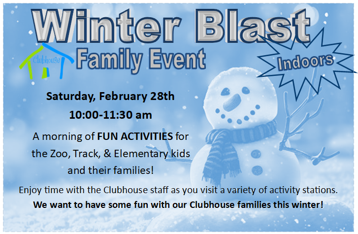 The Winter Blast Family Event is for Clubhouse kids and their families (Zoo, Track & Elementary).